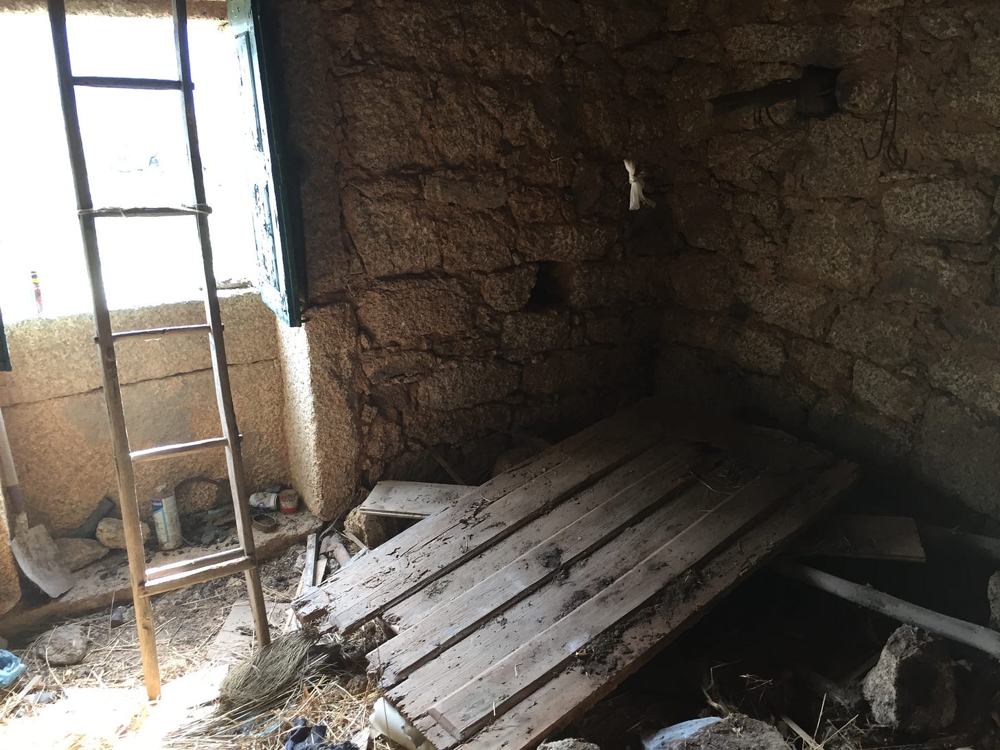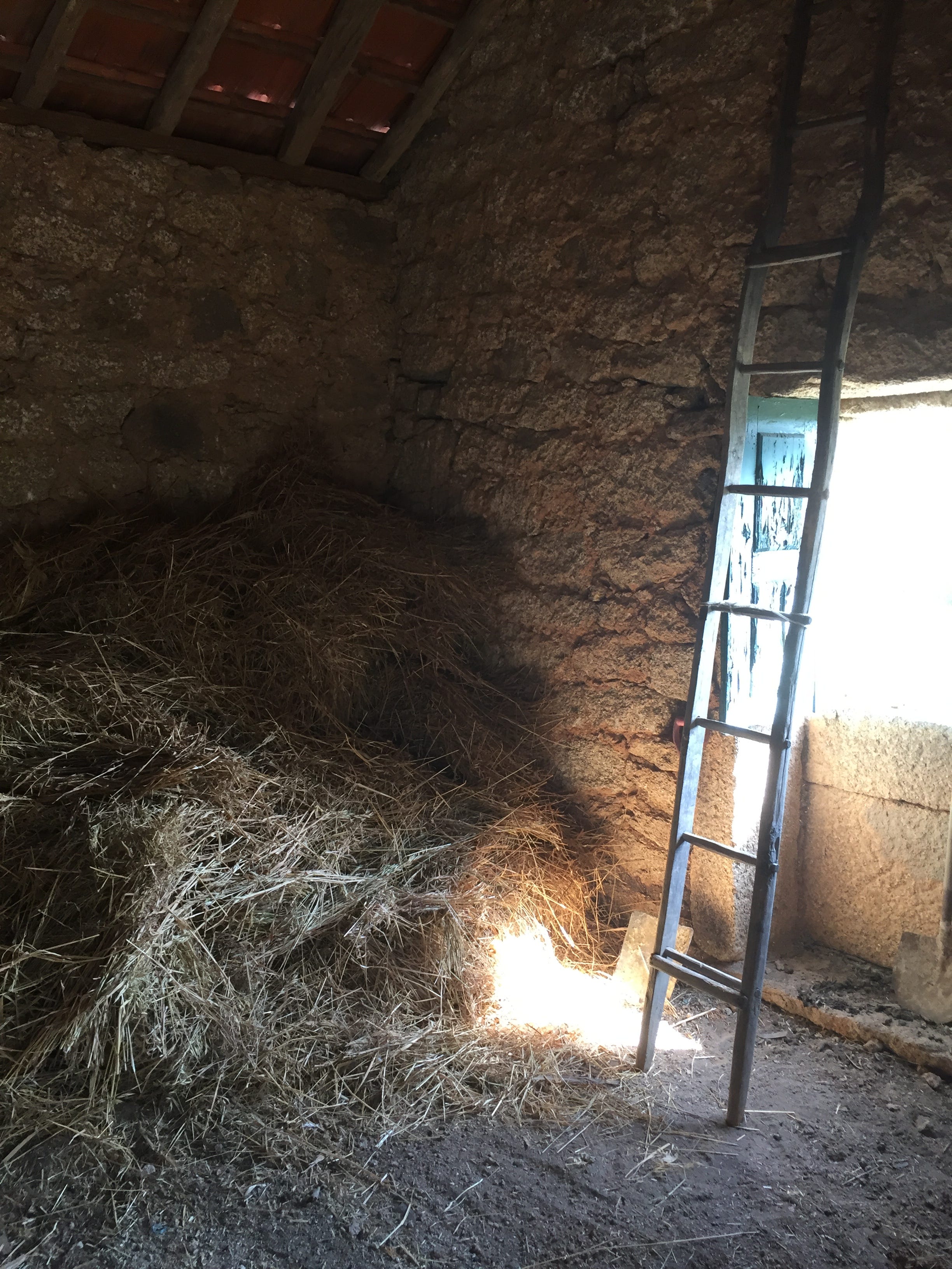 How the barn looked inside. Mud floor, holes in the roof & the walls, a lot of straw & goat shit.